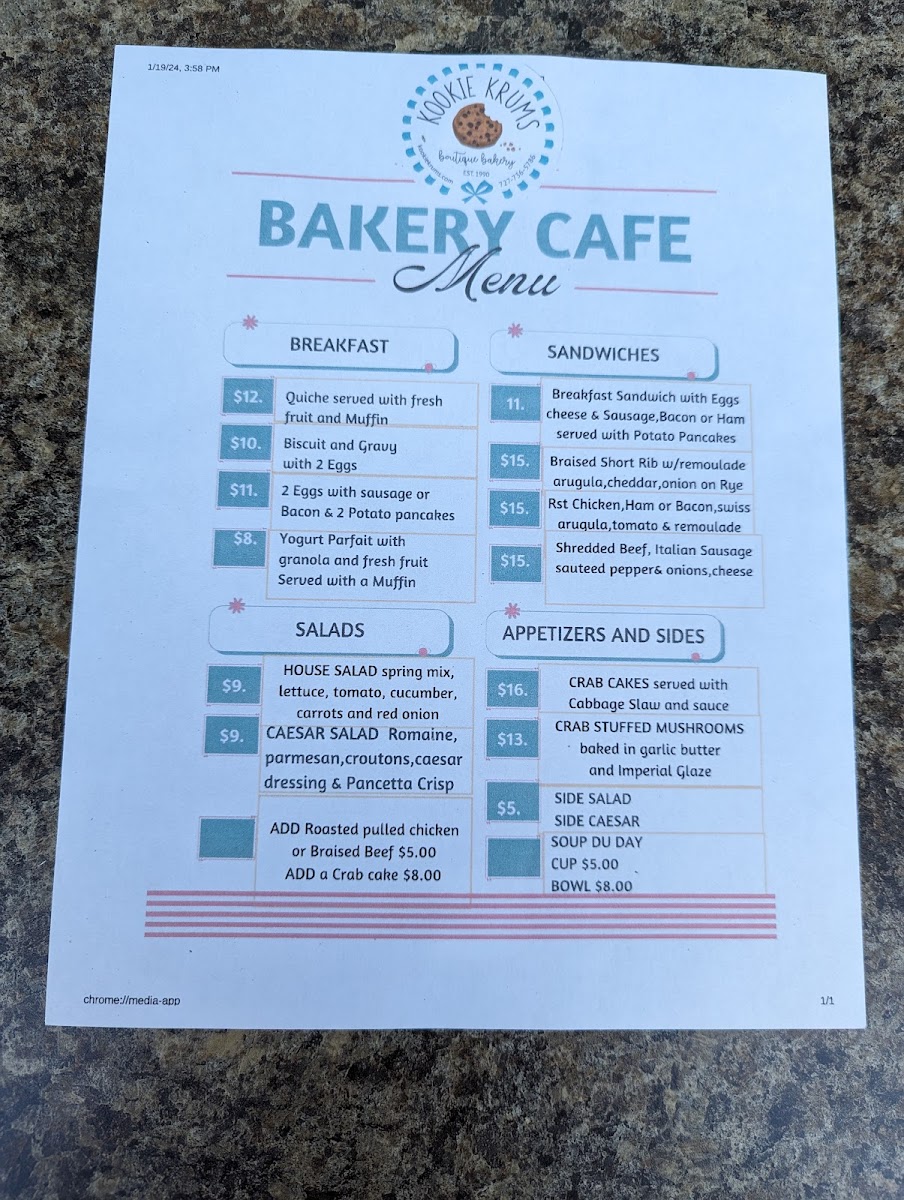 Welcome to Kookie Krums, a delightful café nestled at 513 Main St, Dunedin, FL, where the aroma of freshly baked goods fills the air. This inviting spot offers a delectable selection, from unfrosted and frosted brownies ($4.00-$4.50) to scrumptious cake pops ($3.50) and jumbo muffins ($4.50). The warm ambiance, complemented by exceptional service from the friendly staff, sets the stage for a memorable dining experience.